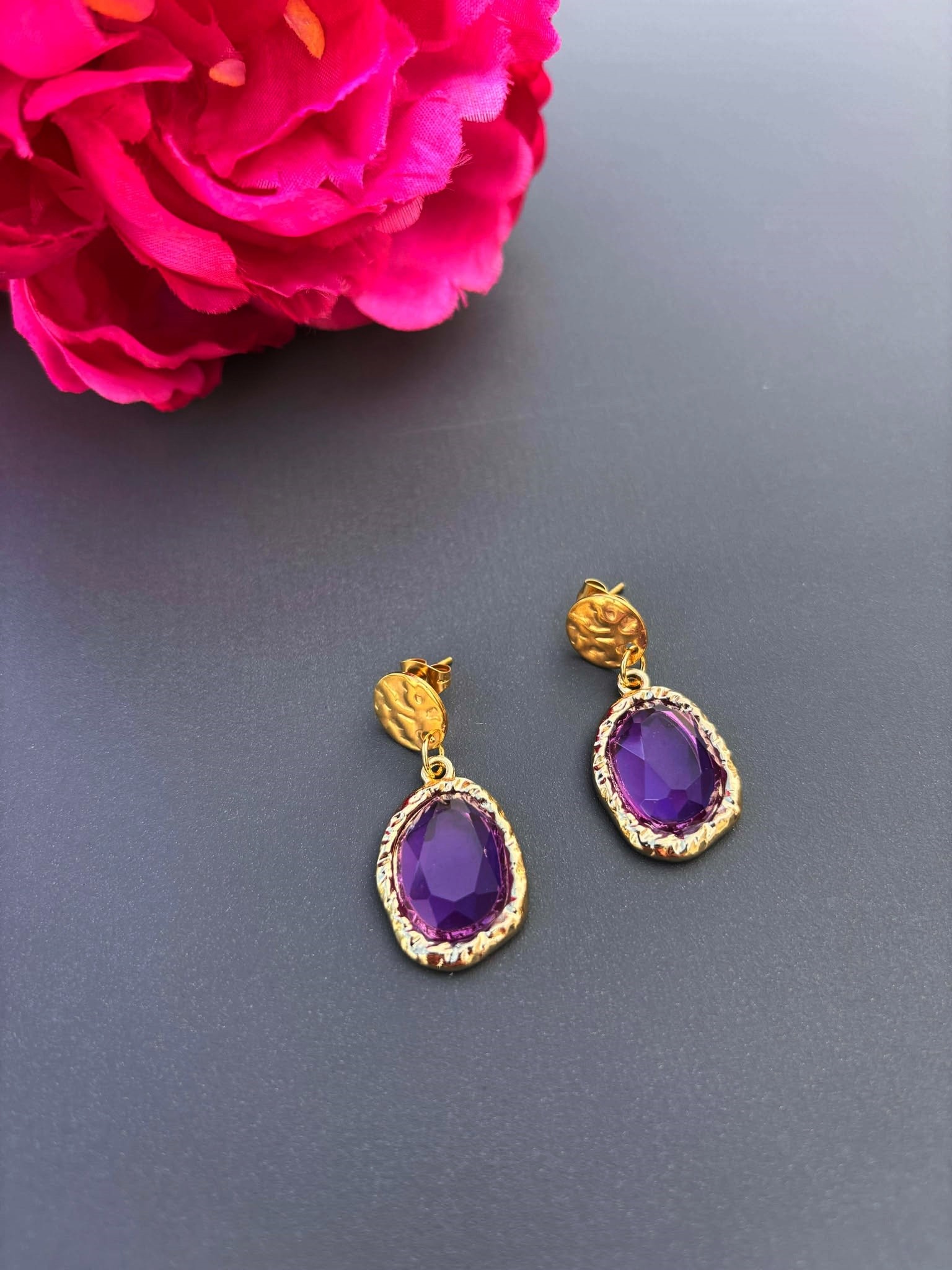 Elles se composent de pierres de teintes colorées, sublimées par un serti doré à l'aspect texturé, au charme bohème et méditerranéen.