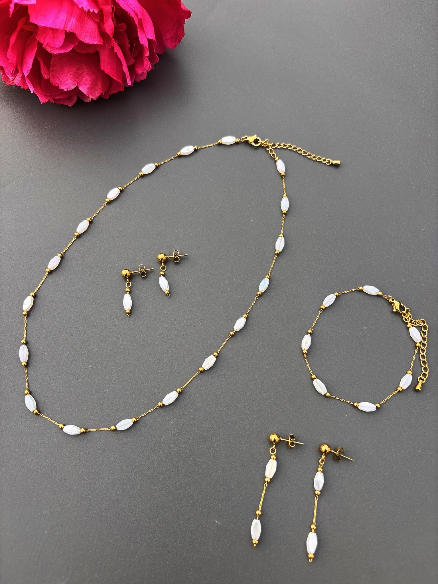 Leur design délicat, composé de perles blanches et de touches dorées, apporte une note douce et raffinée, idéale pour illuminer votre style avec subtilité !