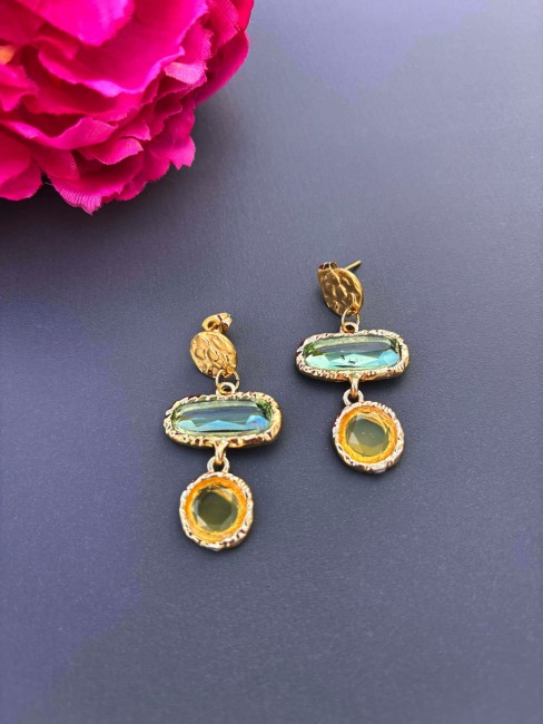 CALISTA - Boucle d'oreille en acier inoxydable doré jaune & vert