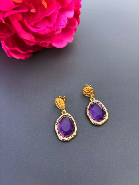 CALISTA - Boucle d'oreille en acier inoxydable doré violet